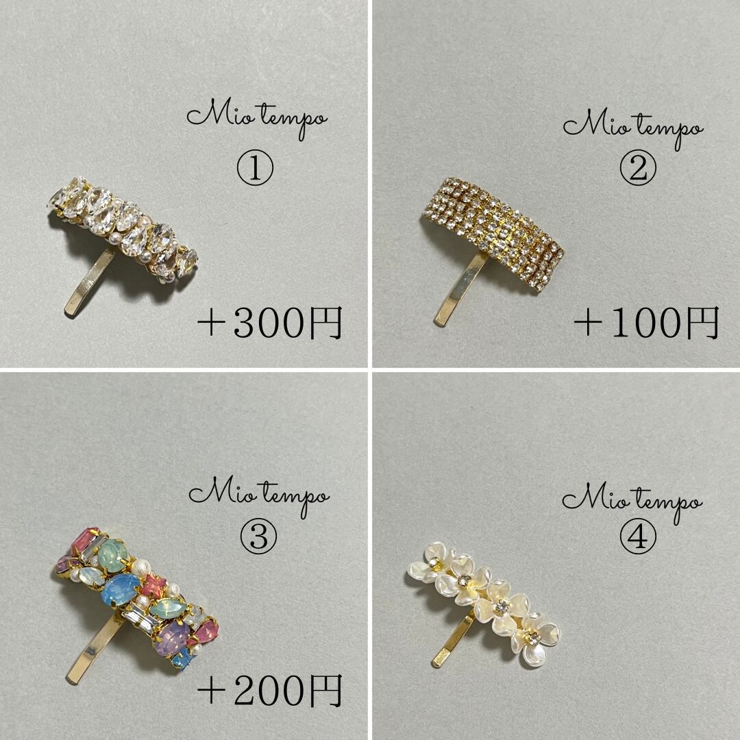 ガラスビジューや、ジルコニアをつかったシンプルで使いやすいデザインのポニーフックです。